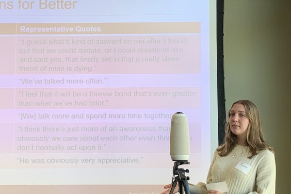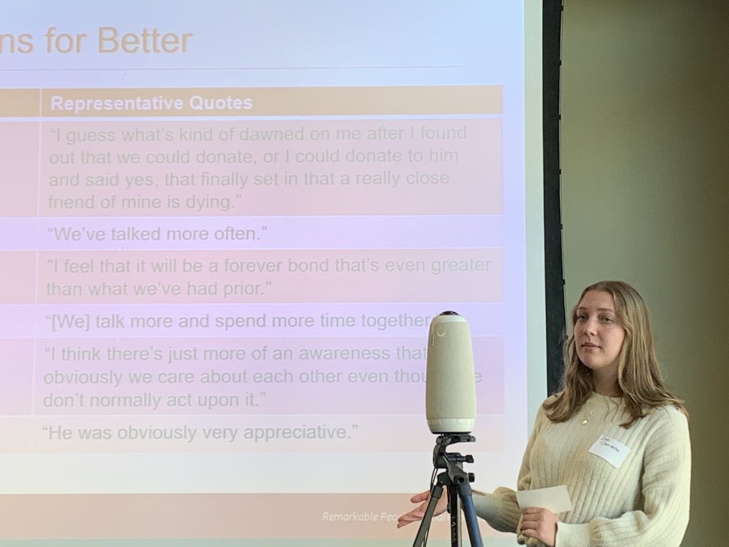 Beth presenting her project Concerns with Crowdfunding for Solid Organ Transplant-related Expenses: Results from a National Survey