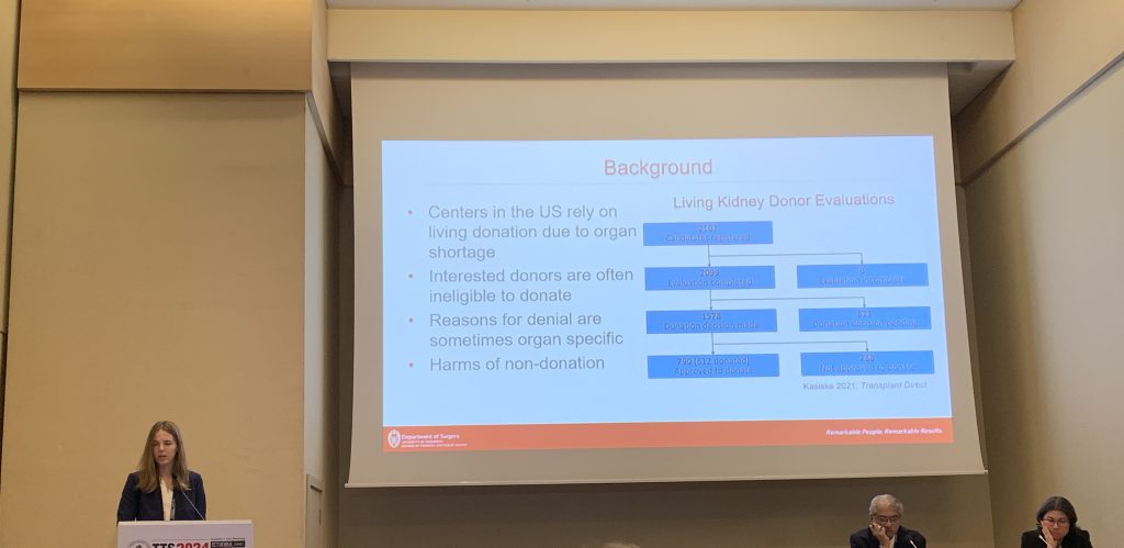 Liz presented her talk “A Liver for a Kidney: Donor and Professional Attitudes Toward Trans-organ Exchange” at TTS 2024