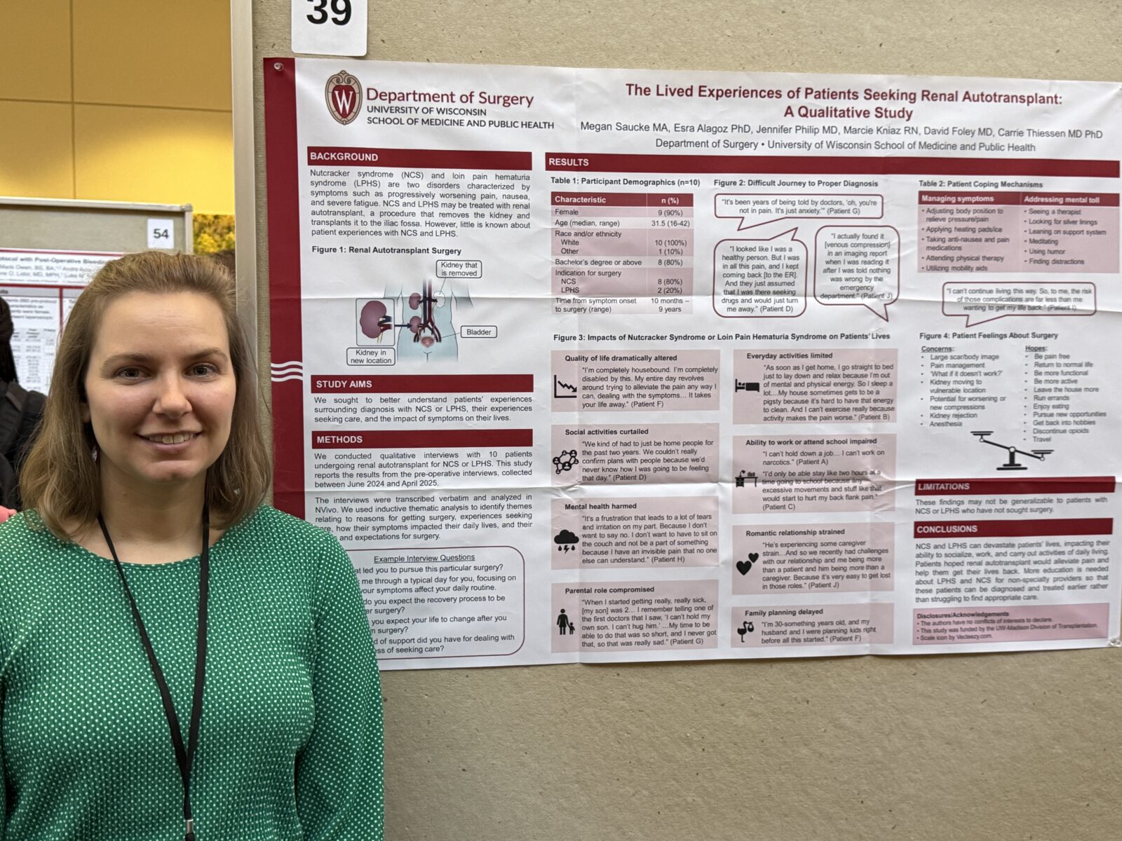 Megan Saucke presented on her and her team’s work investigating the lived experiences of patients seeking renal auto-transplants at the 2026 Research Summit.