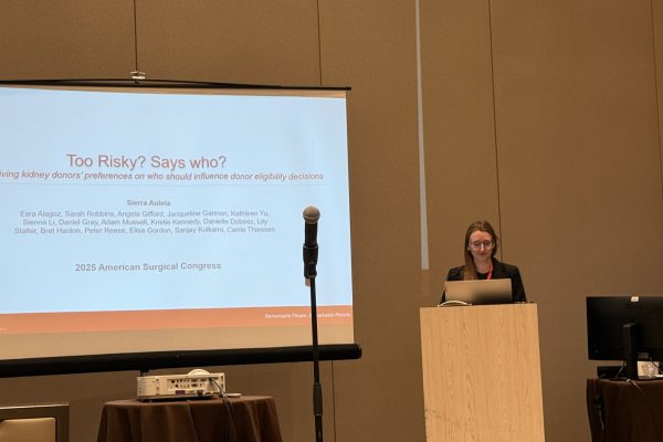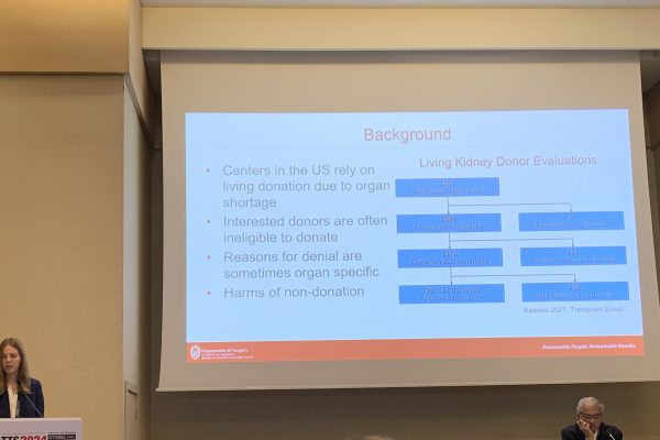 Liz presenting at the Medical Student Research Forum on donor and transplant professional attitudes towards trans-organ exchange!